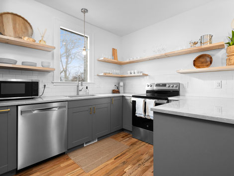 Also in 2024, our team successfully re-developed a historic Ann Arbor farmhouse that we purchased earlier that year—formerly used as office space, this space was transformed into luxury residential multi-family units, adding a detached Golf Simulator Bungalow for recreation. The property received all-new utilities and a full interior renovation, while preserving original hardwood floors and the home’s signature brick charm.